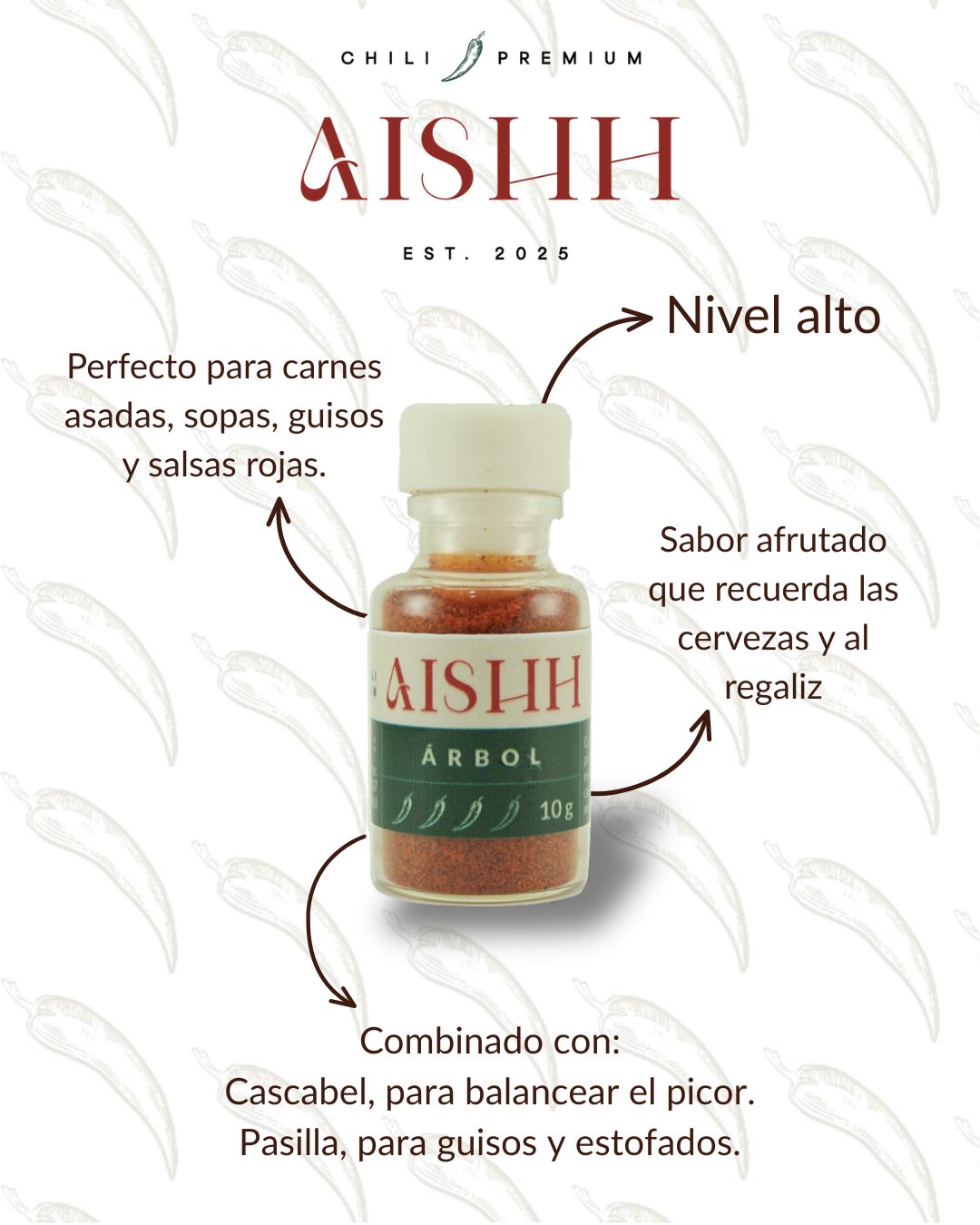 Combinaciones ideales: Con Cascabel (ahumado y suave) para balancear el picor; con Pasilla para complejidad en moles.